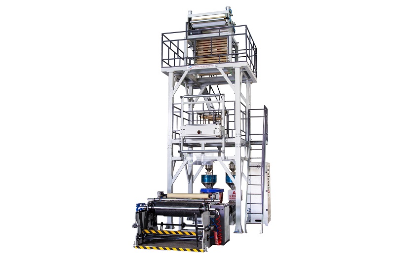 11. The three-layer co-extrusion A+B+A combined film blowing machine has its unique characteristics in both HDPE production and LDPE and LLDPE production. The physical strength of the film is improved by multi-layer co-extrusion. The configuration of one main machine can be reduced by using one main machine to supply the inner and outer layers.